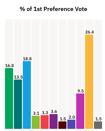 In 2024 the results looked something like this, with a particularly strong Independent presence (from Noel Grealish and Catherine Connolly).