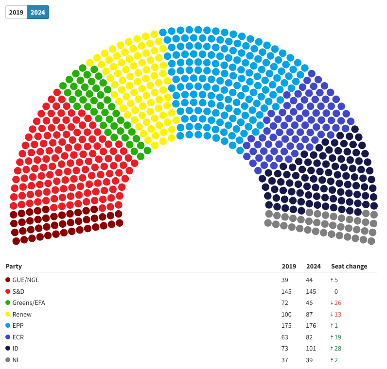 Another likely big winner from the elections is the ECR who will grow their seat share. This is likely to be centred around the FdI in Italy as the largest growth, while Reconquete in France and Vox in Spain should also be able to grow their seat share.